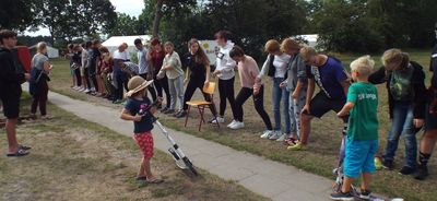 Nachdem es heute Vormittag Aktionen gab wie zum Beispiel Bogenschießen, Simon Says, Basteln in der Bastelbude oder Stränchenfärben mit Haarkreide, war am Nachmittag Großaktion angesagt. Für die Dörfer 1 bis 3 fanden Aktionen auf den Platz statt, während es für die Dörfer 4 bis 6 eine Rallye nach Cismar gab. Der Sixpack schickte seine Teilnehmer auf eine Fotorallye, die auch in Cismar endete. Denn schließlich war heute Grillen für alle. Die kleineren Teilnehmer waren dafür auf dem Zeltplatz und die größeren auf einem Spielplatz in Cismar.